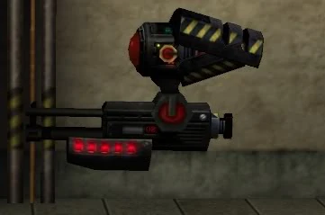 The player will first meet this enemy in the first part of the first chapter "Rooftop Rebellion". It basically looks like a floating camera and can be heard taking pictures of areas to undoubtedly send information to Mech Morphix. The lense of it is yellow but when it sees the player it will change to red and then the camera will attempt to charge the player and it will explode upon colliding with the player; it's role is quite similar to the Sentry Drone in Duke Nukem 3D. Depending on where the player is hit it could take up to 40 ego away and not only that even if the player does destroy it the resulting explosion could still do some damage if they're too close so it's best to stay away from these enemies when attempting to destroy them but because they don't take much punishment; it shouldn't be too much hassle to take them out from a distance. This is the only variant that will actually charge the player and self destruct as the two later variants have weapons.