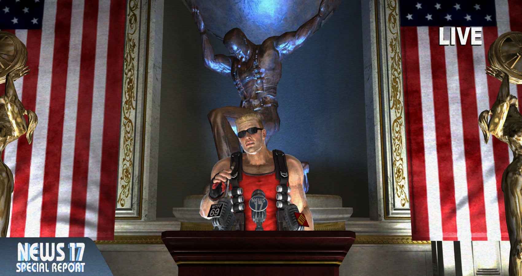 [Reporter]: "Duke, now that the aliens are dead and you've saved the world once again, what are you going to do?"