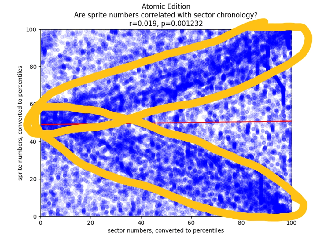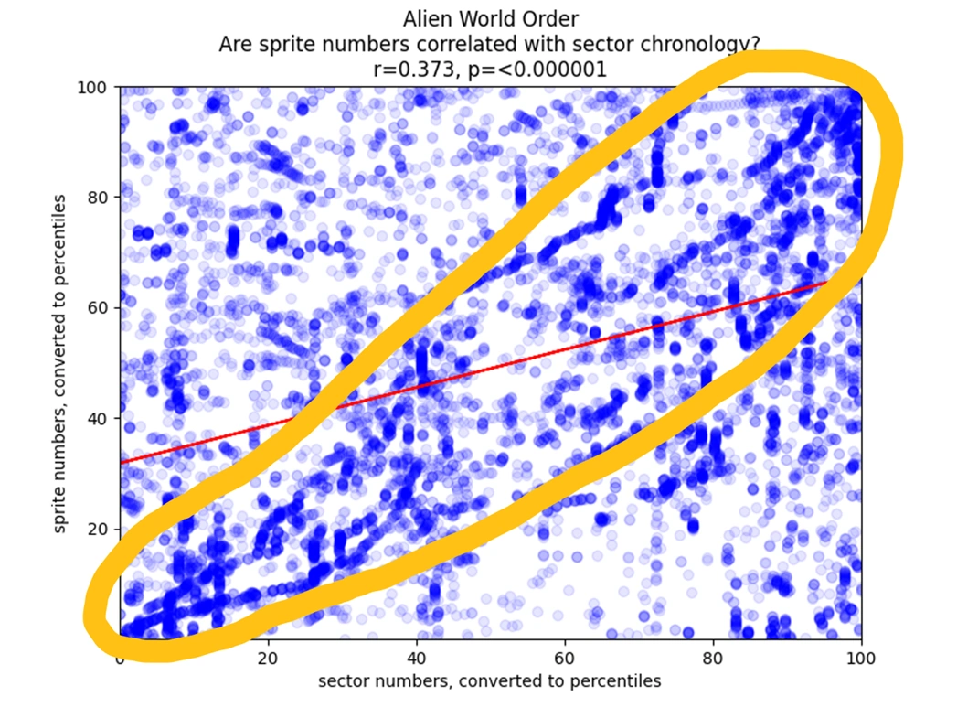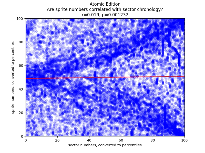 Plotting sprite numbers against the numbers of their host sectors suggests a possible explanation: