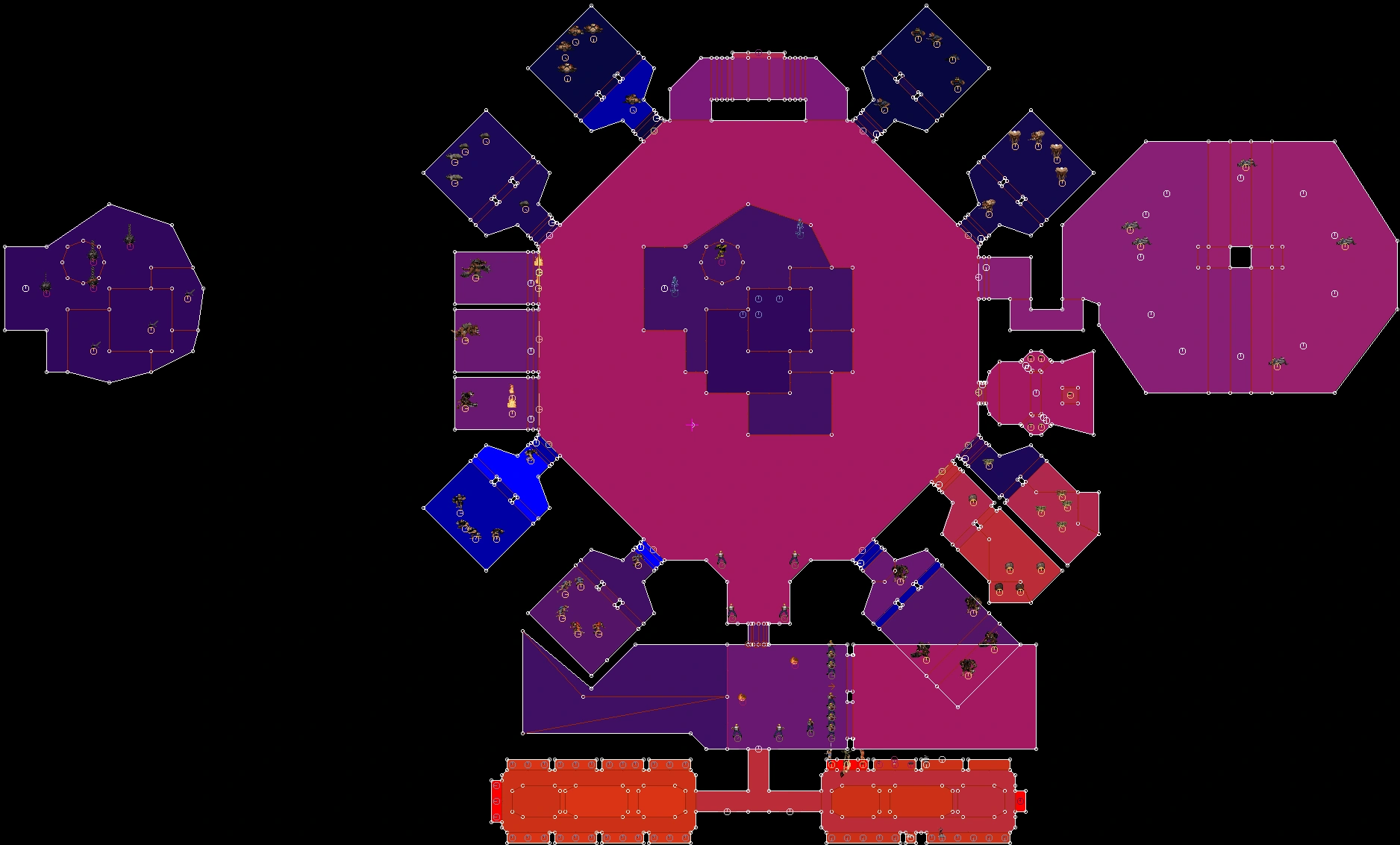 In the mapping software used by the Duke Nukem 3D developers, “sectors” — the term for unitary geometric spaces in the Build engine — are stored in an array that allows random access for the purposes of reading, modifying, and deleting existing sectors, but new sectors are always appended to the end of the array. Crucially, modifying sectors (including their coordinates, number of walls, assigned “first wall”, etc.) does not change their indexical position in the array. In fact, the indexical ordering of sectors is preserved even while copying and pasting a group of sectors from one map file to another, with the lowest index of the group being assigned to the end of the existing array in the new map file. This means that a sector’s index will always reflect the timing of the sector’s creation, relative to all other sectors in the file.